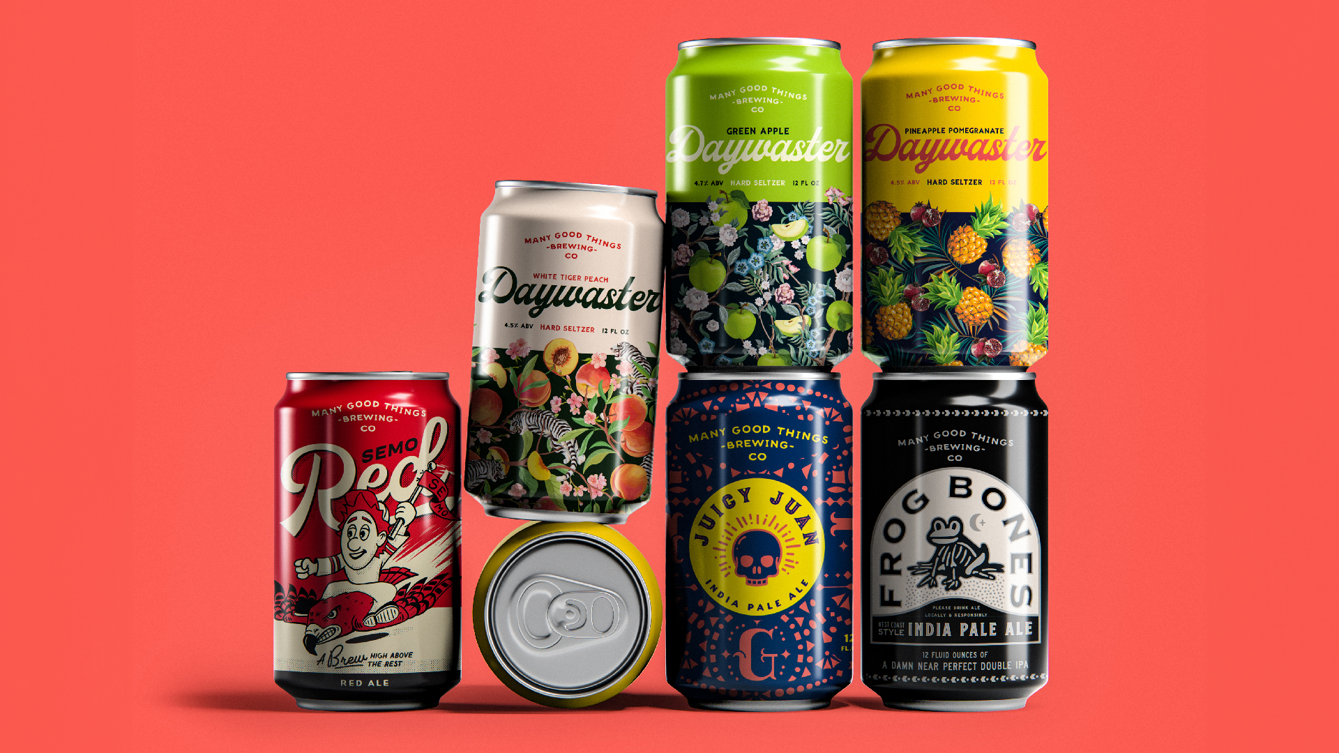 When two home brewers were ready to take it to the tap room, Many Good Things Brewing Co. began their pursuit of perfect beer. Since then, they’ve turned to Hierarchy in pursuit of the perfect brand and packaging design strategies. From doing a full brand exploration and execution for their logo to naming and designing each of their beers and seltzers with bold illustrations and cheeky copy—Hierarchy has been there to lead the creative charge with refreshing concepts for their smoothest of brews.